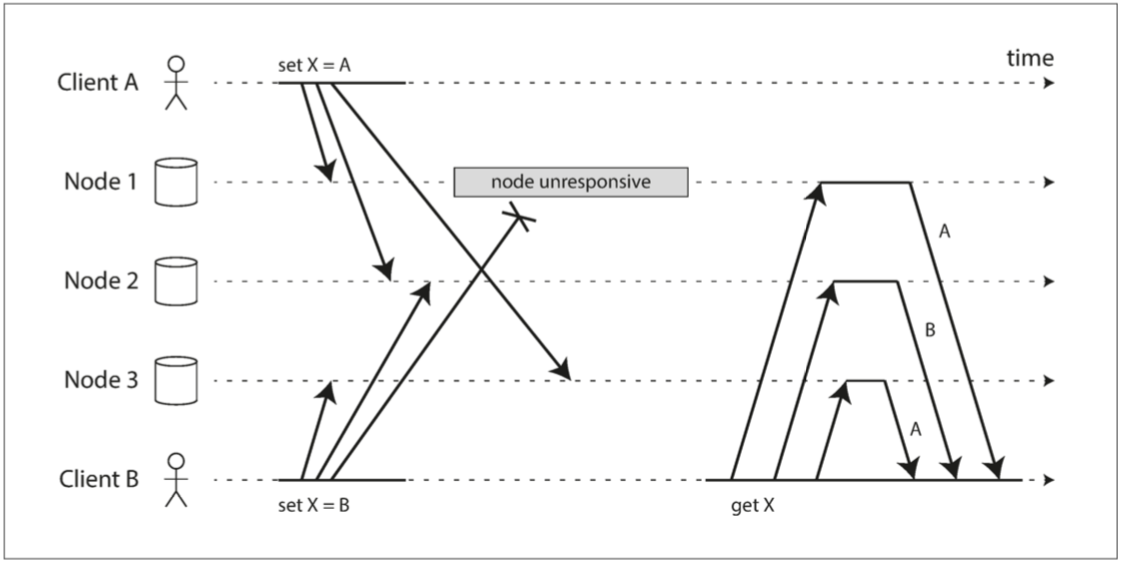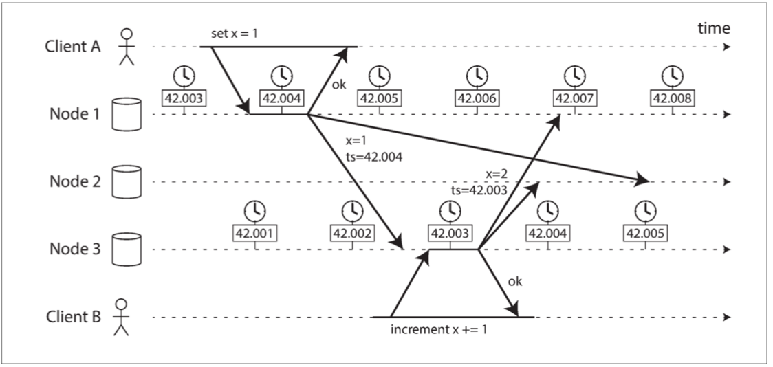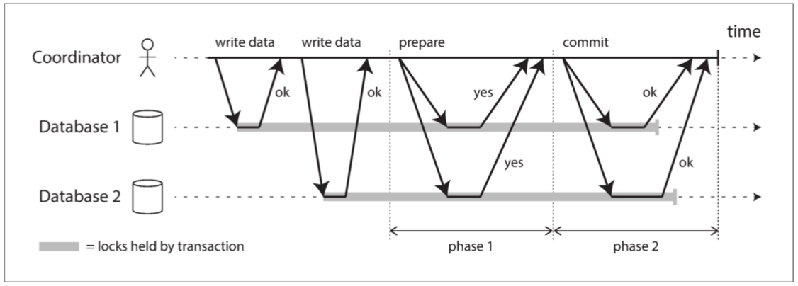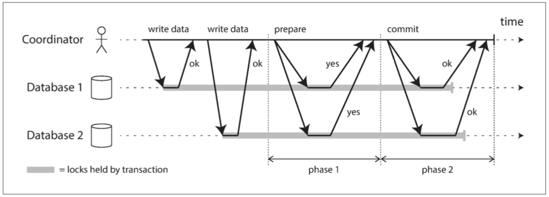 通常,非阻塞原子提交需要一个 完美的故障检测器(perfect failure detector)—— 即一个可靠的机制来判断一个节点是否已经崩溃。在具有无限延迟的网络中,超时并不是一种可靠的故障检测机制,因为即使没有节点崩溃,请求也可能由于网络问题而超时。出于这个原因,2PC 仍然被使用,尽管大家都清楚存在协调者故障的问题。