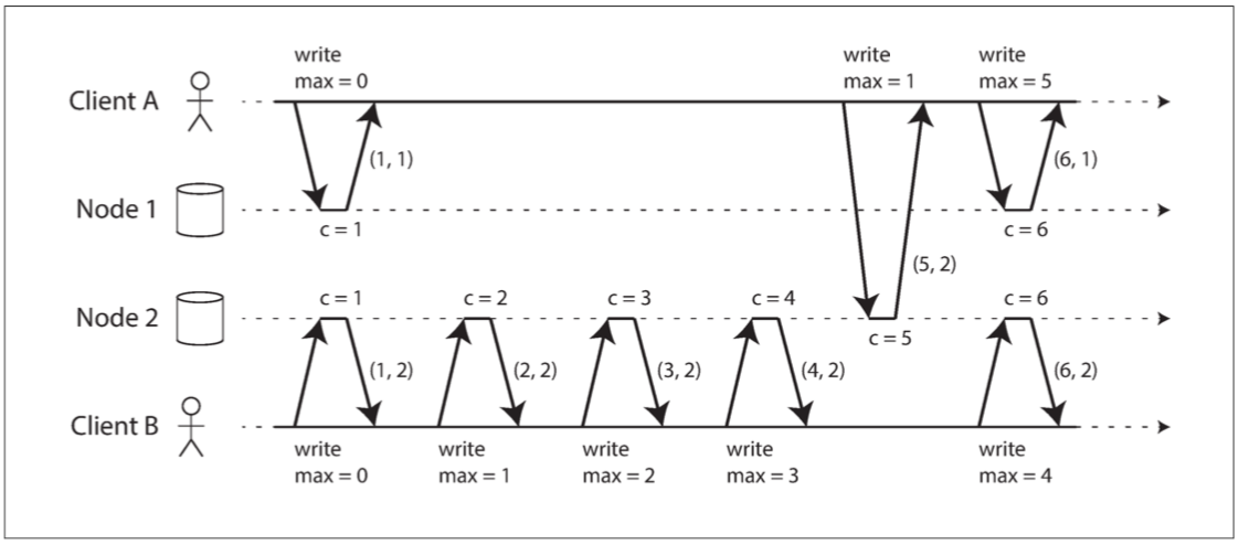 迄今为止所讨论的所有共识协议,在内部都以某种形式使用一个领导者,但它们并不能保证领导者是独一无二的。相反,它们可以做出更弱的保证:协议定义了一个 纪元编号(epoch number,在 Paxos 中被称为 投票编号,即 ballot number,在视图戳复制中被称为 视图编号,即 view number,以及在 Raft 中被为 任期号码,即 term number),并确保在每个时代中,领导者都是唯一的。