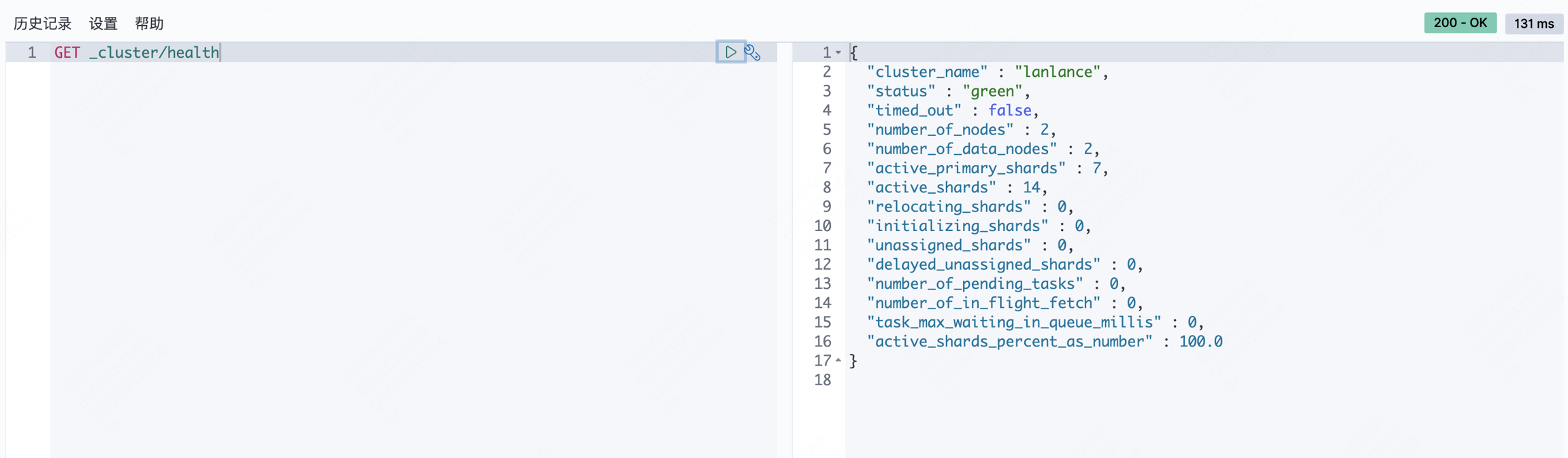 1、在 Kibana 中查询,使用命令 GET _cluster/health